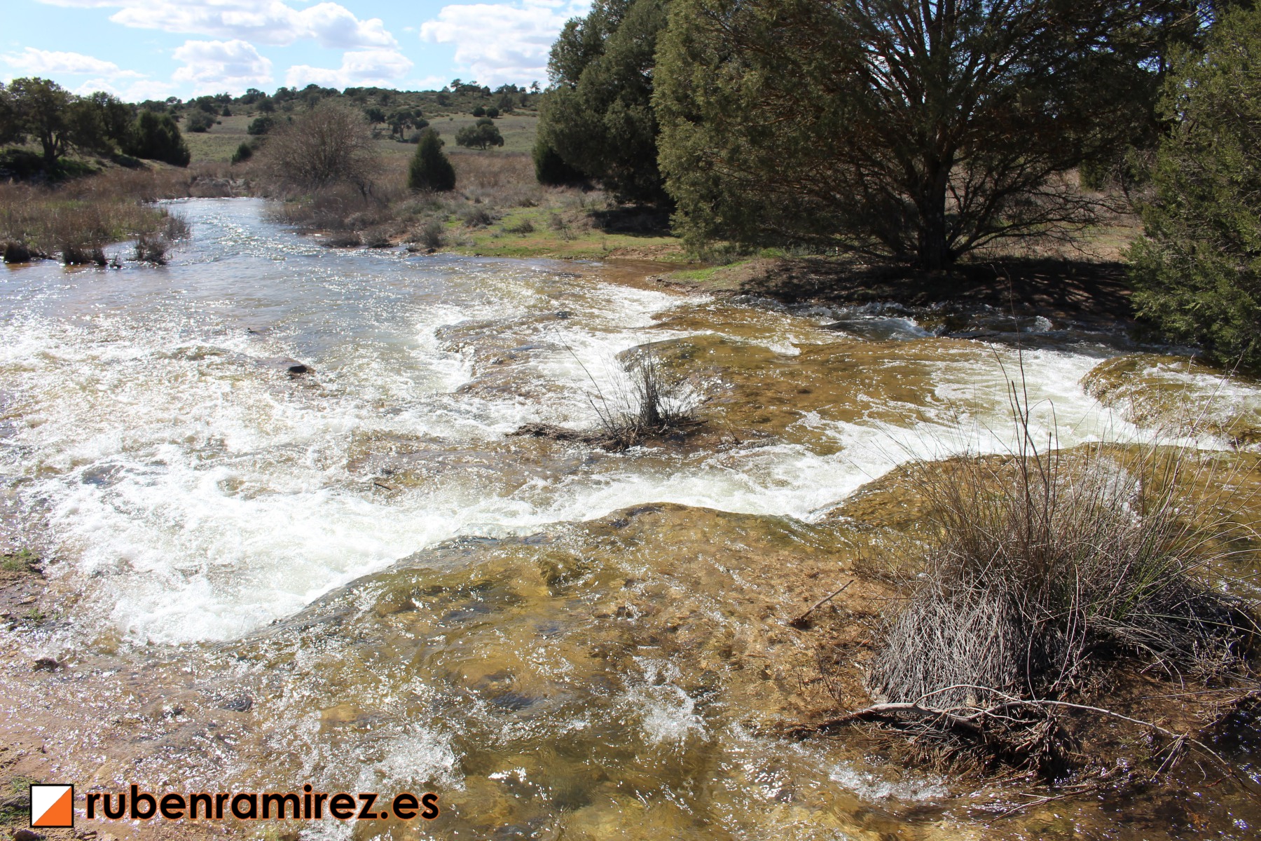 - El tramo de las Lagunas de Ruidera: Durante 30 km, el agua recorre el Parque Natural formando espectaculares cascadas de travertino. Al final del complejo lagunar, el agua parece «desvanecerse» al filtrarse masivamente en el subsuelo