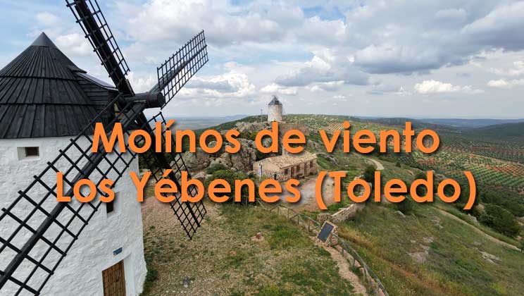 Los Yébenes, en la provincia de Toledo, cuenta con dos molinos de viento emblemáticos situados en lo alto de la cresta de la Sierra de Los Yébenes, ofreciendo unas vistas espectaculares de la llanura manchega y los Montes de Toledo