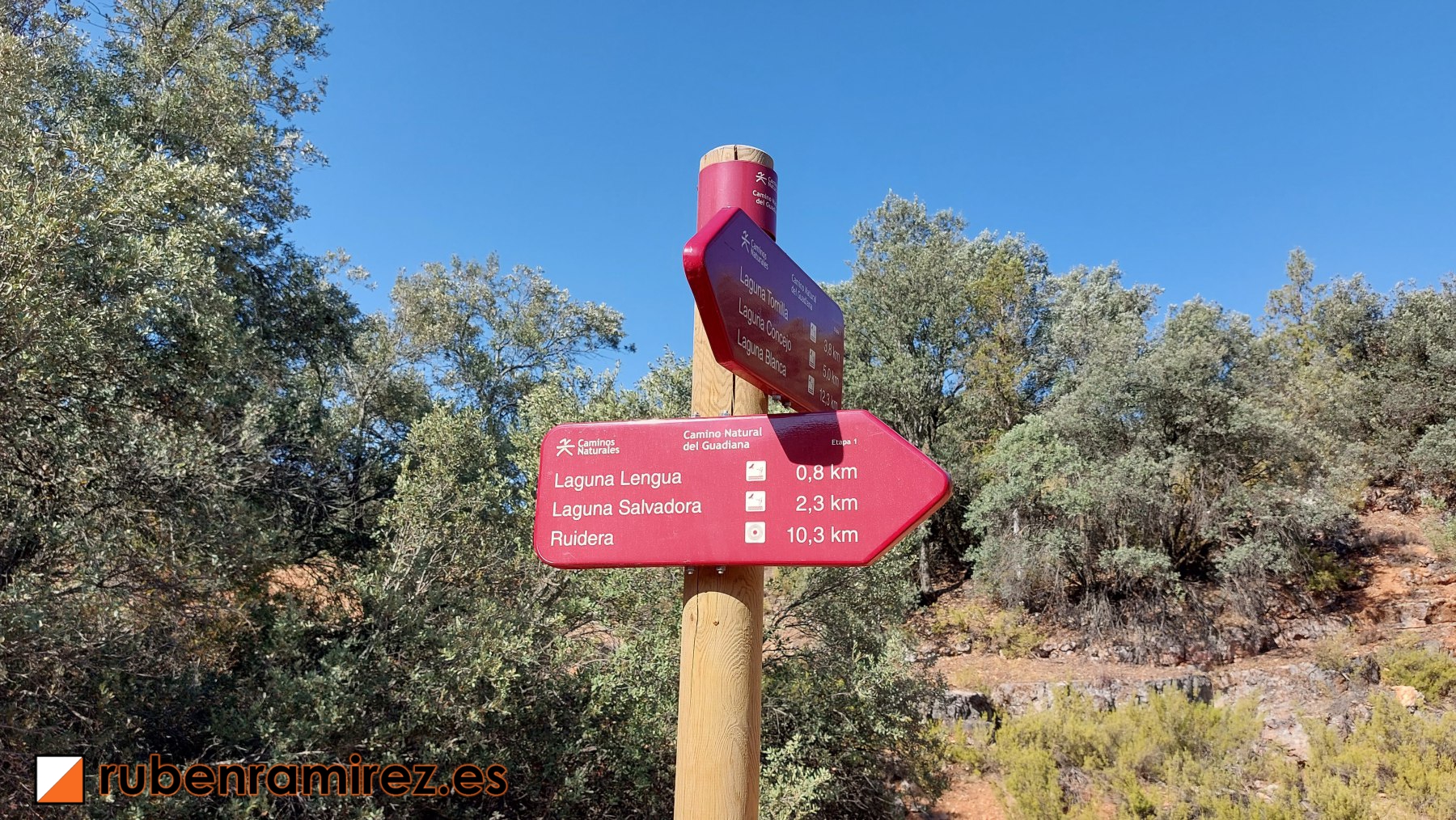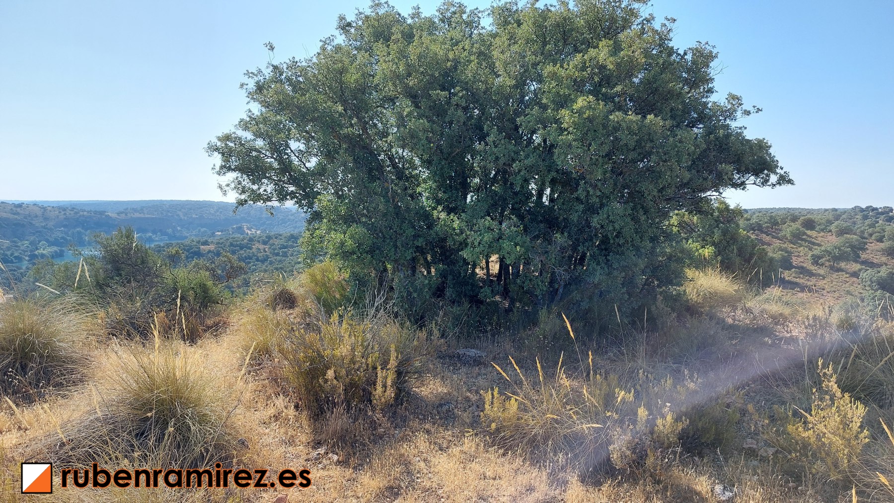 Nos dirigimos al segundo de ellos, situado más al norte, hasta llegar a un cortado de rocas donde en el punto más alto hay una encina. Desde allí, al norte vemos la Laguna Lengua, al Este la Laguna Redondilla y el Camping Los Batanes.